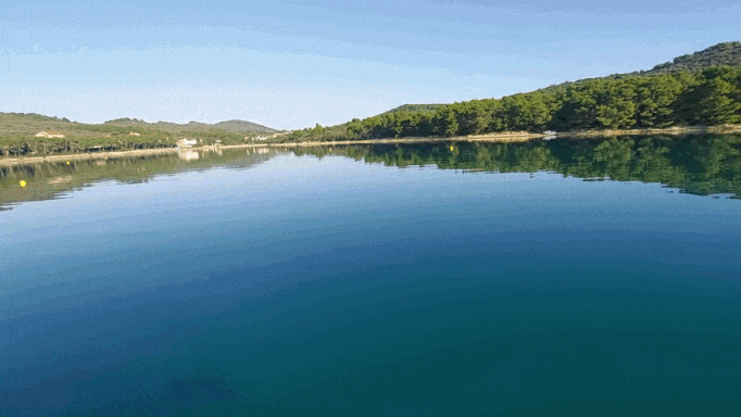 A remarkably well-protected bay on the eastern side of Ugljan — calm, enclosed, and almost unnervingly still. The kind of place that feels less like an anchorage and more like a pause in time.