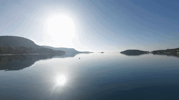 In calmer conditions — especially in autumn — the bay becomes almost unnaturally still. One of those rare places where anchoring feels effortless.